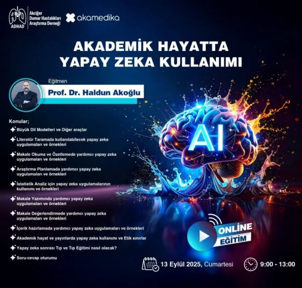 Akciğer Damar Hastalıkları Derneğinin düzenlediği ve Abdi İbrahim İlaçlarının koşulsuz desteğiyle düzenlenen Akademide Yapay Zeka Kullanımı eğitimimizi interaktif oturumlar ve hocalarımızın yoğun katılımıyla 13 Eylül 2025’de tamamladık.